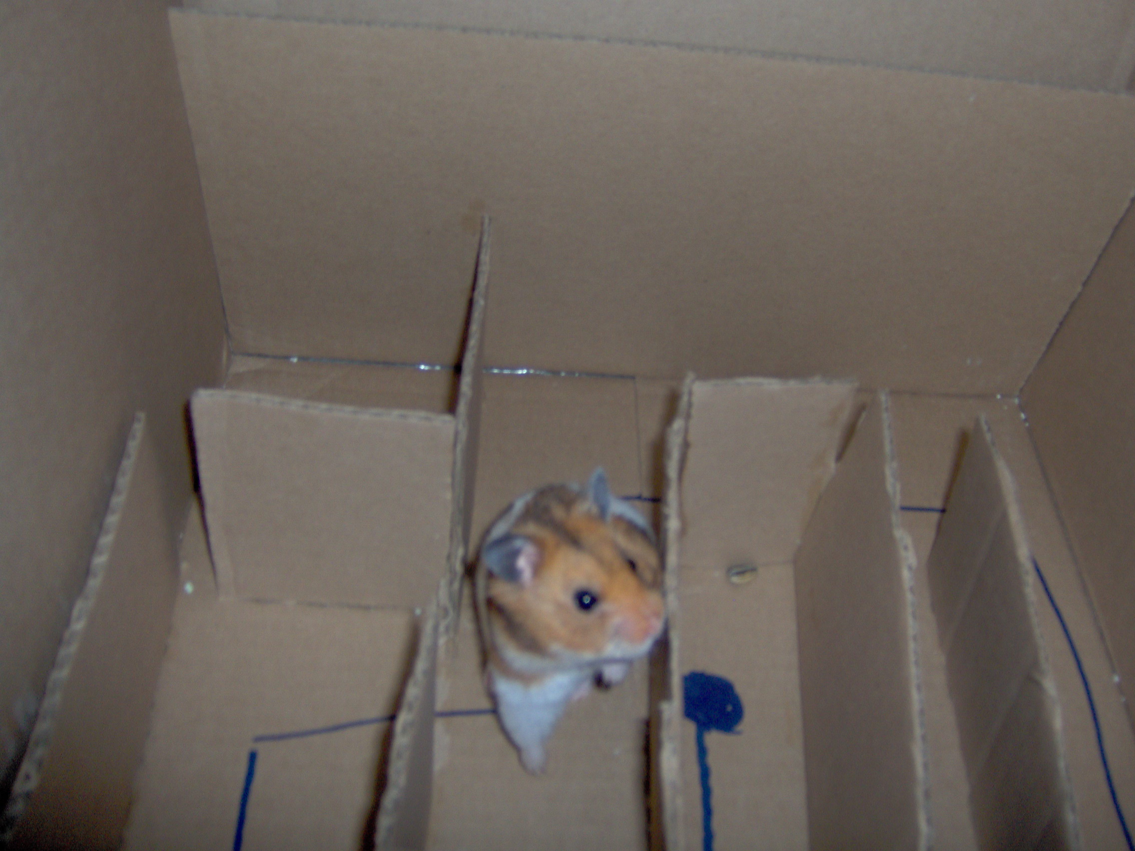 Take a lookI tied a string through the end and put a carboard peice there, so he was trapped at the beginning and when I pull the string it pull up the cardboard peice and he can go wherever he wants. I put sunflower seeds at the end for his reward when he finished. He went around and got the sunflower seeds out from the ending part and then tried with all of his life to get out!