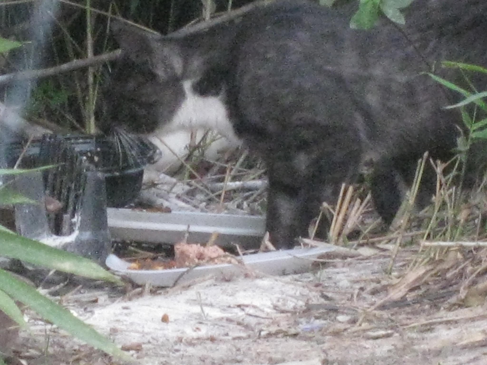 I was feeding one of my colonies tonight and this tuxedo showed up. I have never seen this baby before and was amazed at the markings. The first picture is a face picture, a beautiful Tuxie face, but then I started snapping the rest of the body and check out the tabby markings. Unfortunately the last picture is him cutting thru the parking lot. I was afraid to go after for fear he may head towards the road. I hope he/she will be back.