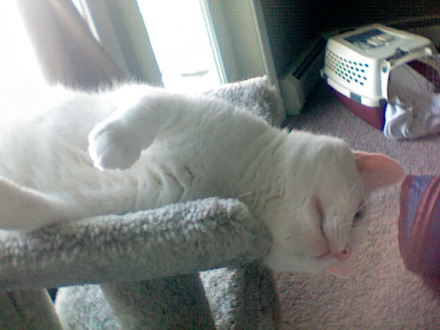 Cali is being a goofy girl. So while I am sitting here with my Mac I decided to try to photograph her with the webcam. She froze and posed beautifully. Hope you like.