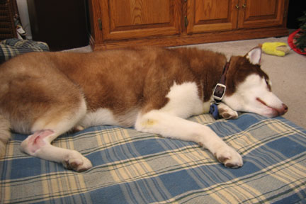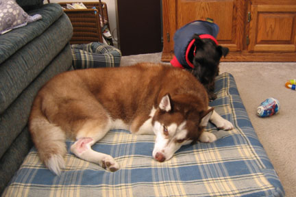 Nebo is home...poor guy, looking at him makes me so sad.They must have really knocked him out, he could hardly walk out of the vet. He's been whining a bit too, I'm sure his leg hurts him. He can't run around at all for at least 2 weeks..and Nebo looooves to run. I have to make sure it doesn't get wet either, which is going to be fun with all the snow. :/ I won't know the results of what the lump is for a few days, keep those prayers coming..I'm hoping it's benign.