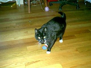 I don't have a picture of him, but I still want to mention "my" cat Hootie who lives up at work. He's all black except for a small white patch on his chest