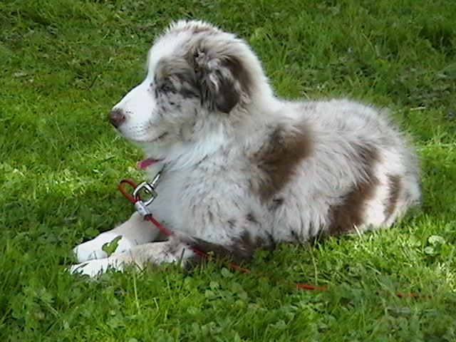 October 2004 I adopted a 3-4 year old Aussie, Lenny. We had him for a month but had to give him back to the rescue because he kept biting my dad in the face (out of the blue, for no apparent reason!) and he did want us to keep the dog after that.He was the smartest boy, and I wish it could've worked out.