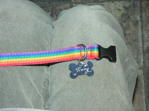 Those are all really cute! Finn's collar is just plain red! He had the same collar up until he was about 14 months old, and, even then, he got the same one, just bigger. It does have his name and my parent's home number embroidered on it, though!