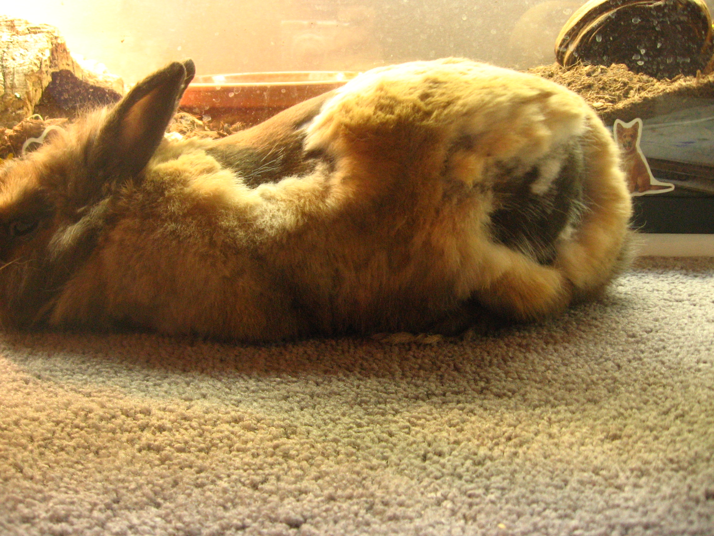 It's not parasites or anything. His fur is coming out in clumps, some say hes having a MAJOR molt others say it could be stress or something(these people are from my buny group)