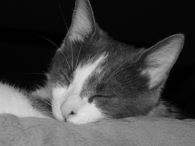 Jenna is just adorable. I love the black and white photos. Kitties sure are cute when their eyes get so big focusing on those squirrels!