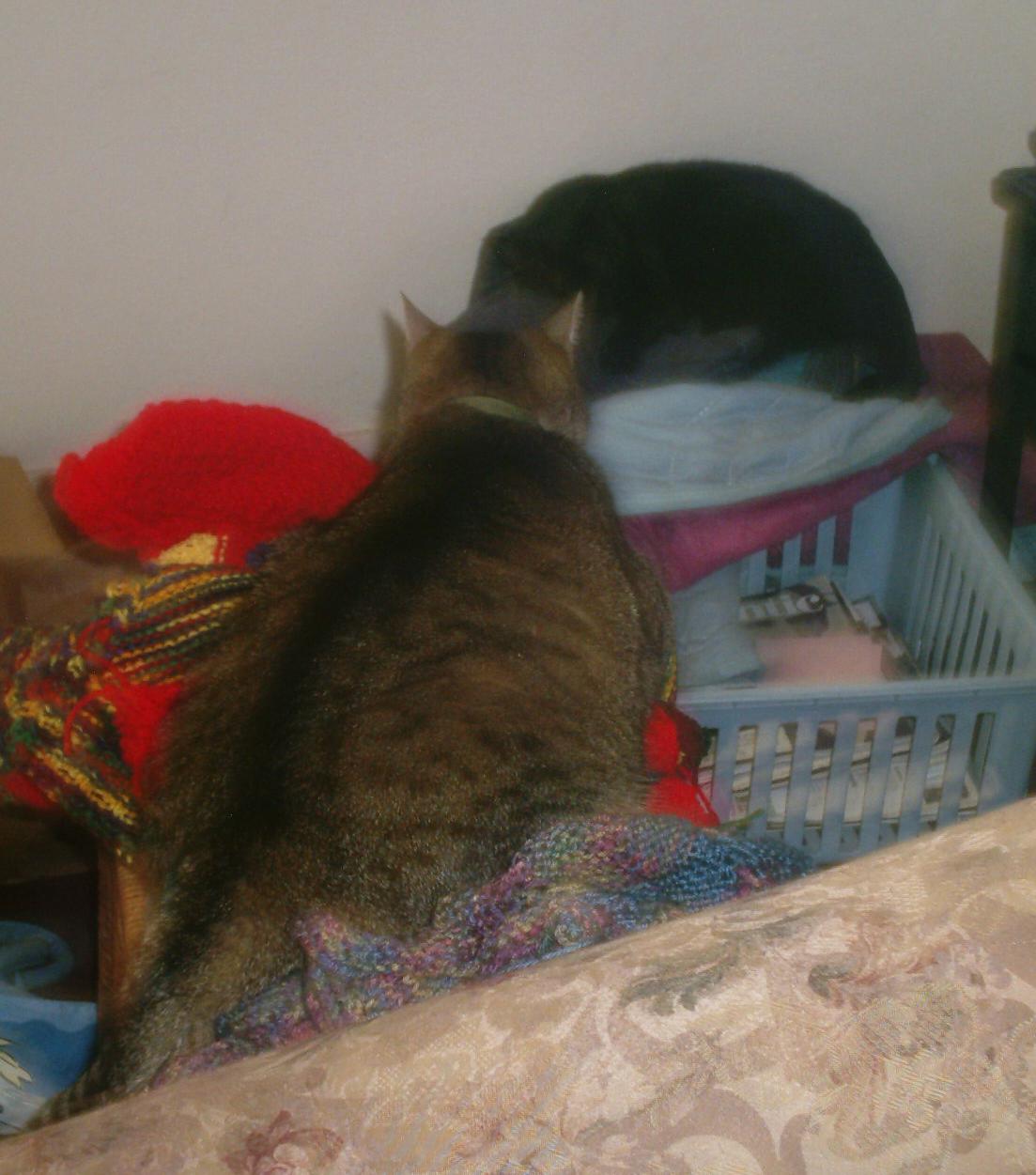 And a couple of nights ago, he decided that I spent too much time knitting. I'm making these blankets for Project Linus , but did he listen? No!