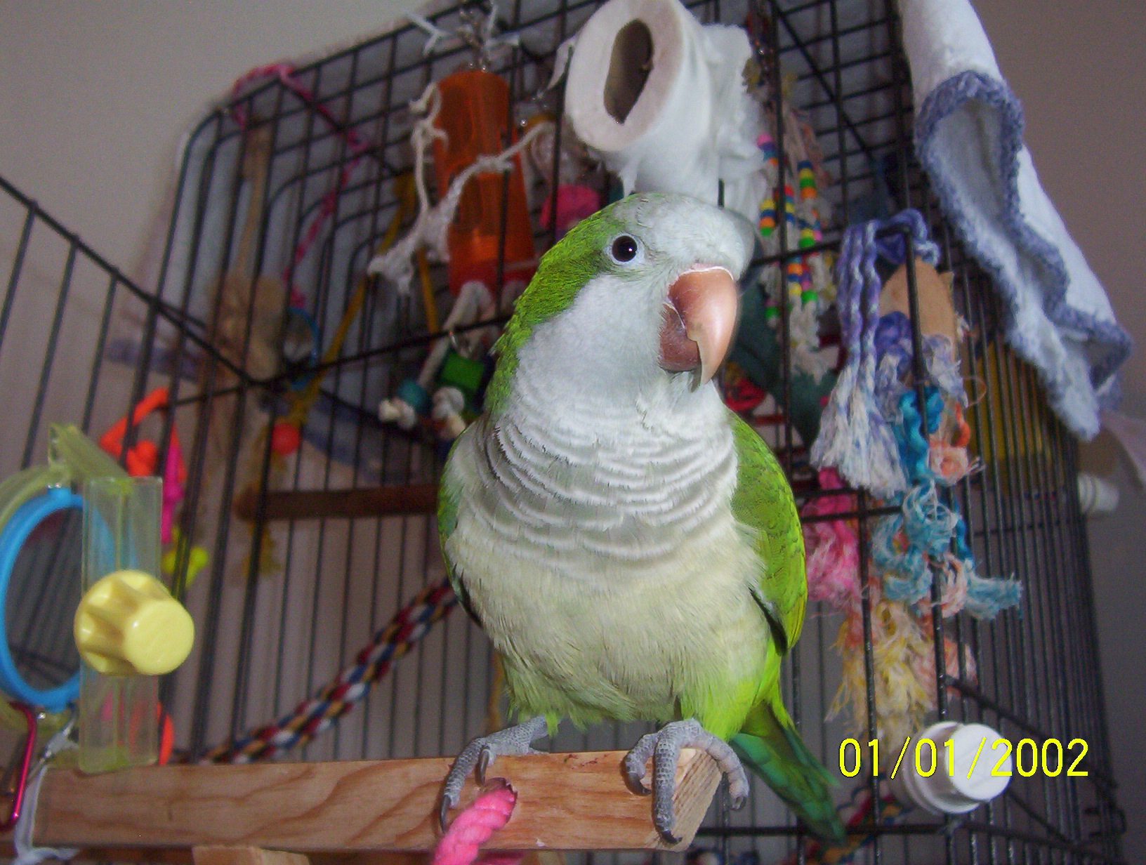 Thanks everone.He is bonded with my mom so he really isn't nice to anyone esle.He bits and says ouch or stupid or Good boy.He can say a lot of things.We watch him around the cats.