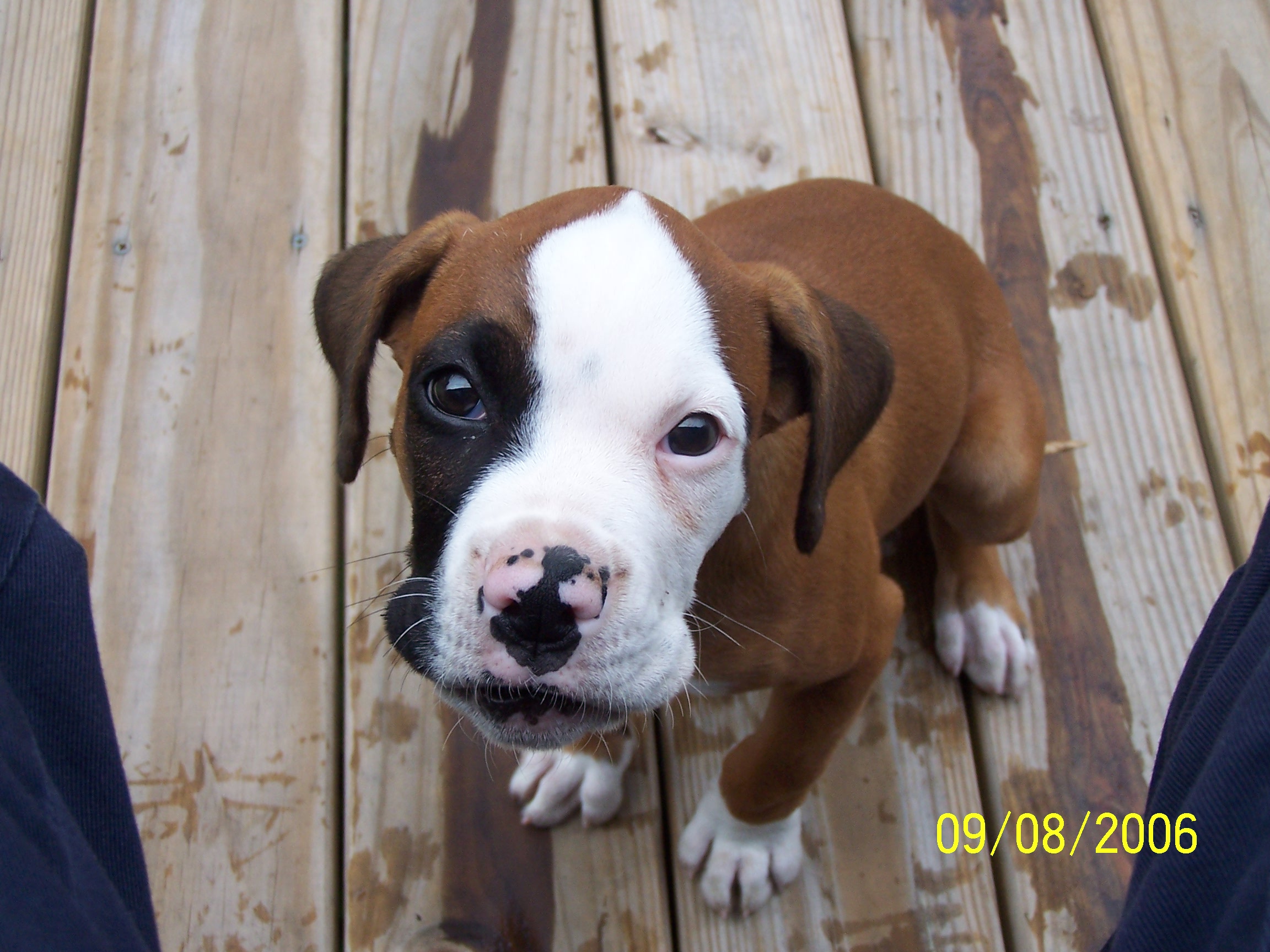 I went out this morning after getting home from work and worked with Daisy some on sitting. She probably sat about 75% of the time without holding a treat to her nose. I also worked on getting her to quit jumping on me and not biting, every time she done one or the other i ignored her until she left me alone and went on to play with something else. She doesnt really get it yet but im just starting to work with her. Here are some more pictures of her. Also how do i get those pictures to show up on my threads and replys under the message i cant figure it out.