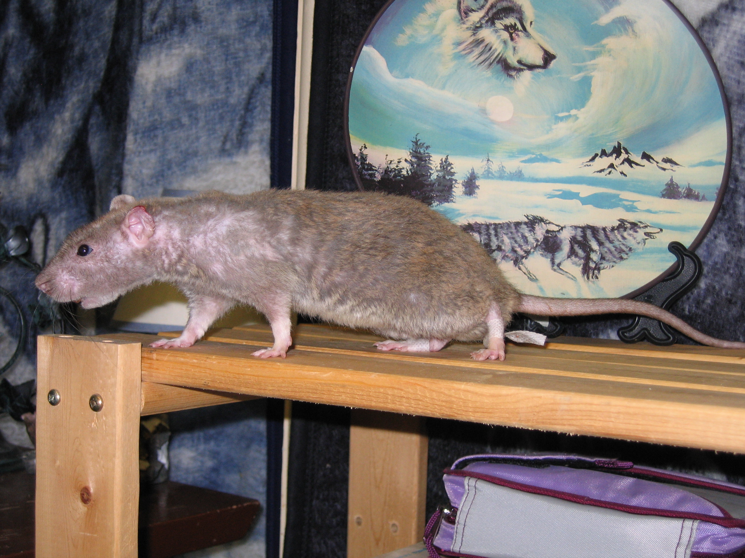 As we speak, he is teasing the cat. Keeps running up thim and then running away. He's a hilarious rat.