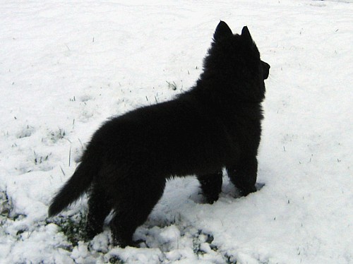 I'm very excited about how gorgeous he is turning out. He has the most beautiful conformation I've seen in a puppy...Though I may be biased.Everyone who sees him comments on how unlike a puppy he is -- in fact, alot of people think he's an adult dog. He doesn't have the "puppy clumsies." He moves like his mother...smoothly, effortlessly, very light on his feet. He is so graceful. I take him for walks just so I can watch him move. I can't wait until he's old enough to show!