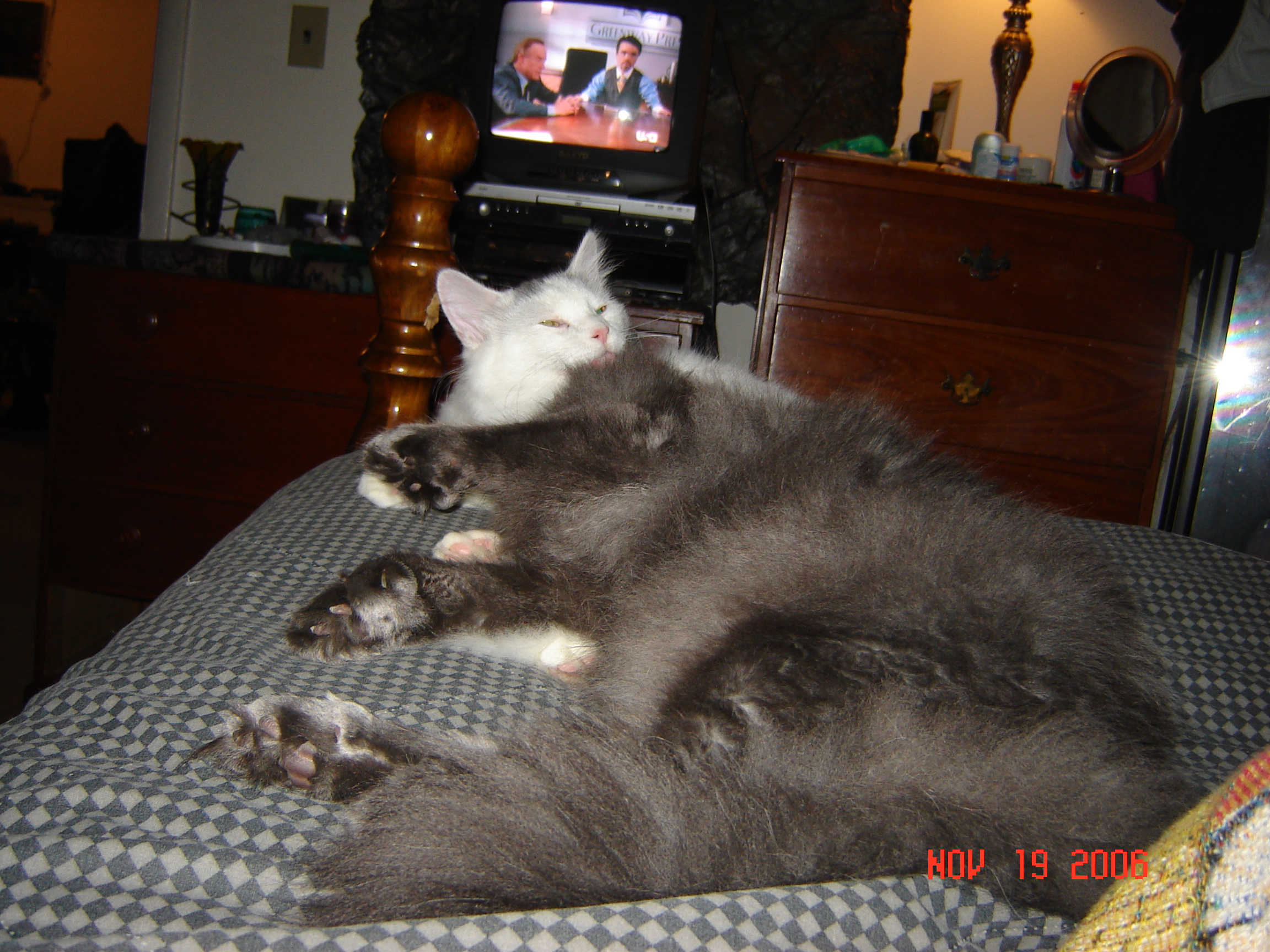 The third picture is of Sebastian and Hermes. They never layed like this before this day so I had to take a ton of pictures like this.