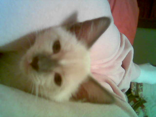 No, she was only 3 when she died. She had something wrong with her, but we're not sure what it was. She was throwing up all the time and leaking fluids everywhere. We didn't have the money to take her to the vet. So, the woman that my mom babysat for took Sophie to the vet for free (She's a secretary in a vet's office). I stayed home from school waiting for her to call and tell us what was going on. A few hours after she took Sophie, she called my mom and told her that Sophie was too sick and had to be put down. She never did tell us what was wrong with her.![]()