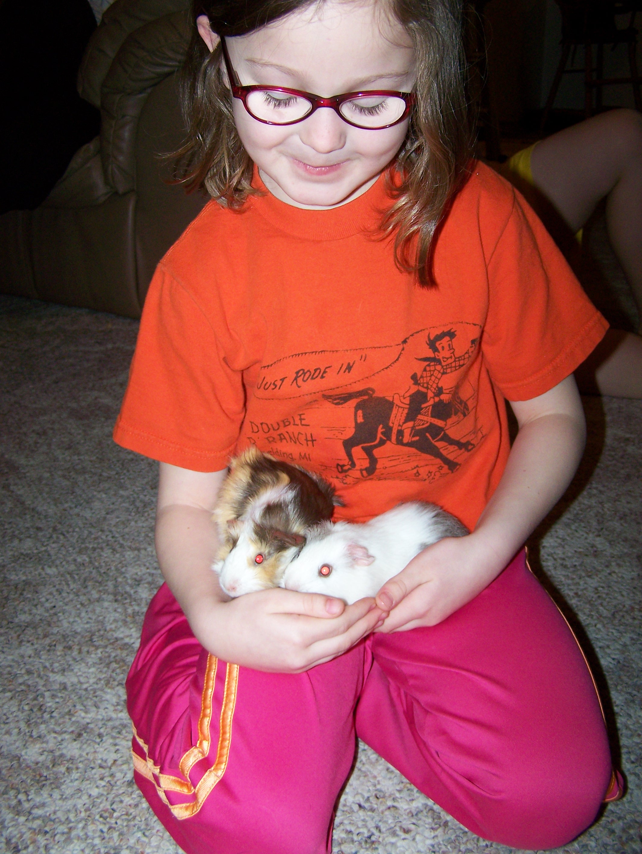 I would go with a guinea pig.They are easy to hold.I think hamsters,rats,and mice would be so small for a 6 year old to hold.Plus guinea pigs come all differnt coat types.Guinea pigs are really messy and need there cage cleaned a lot.They also need fresh veggies everday.