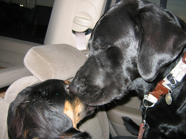 #7 - Mufasa and a puppy named Justice at DogLovers