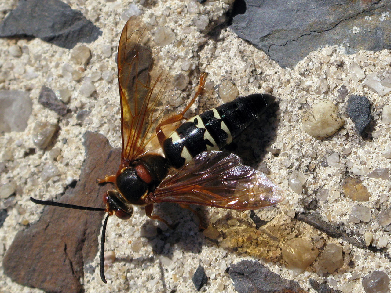 They are called cicada killer bees because they kill cicadas. Makes sense.