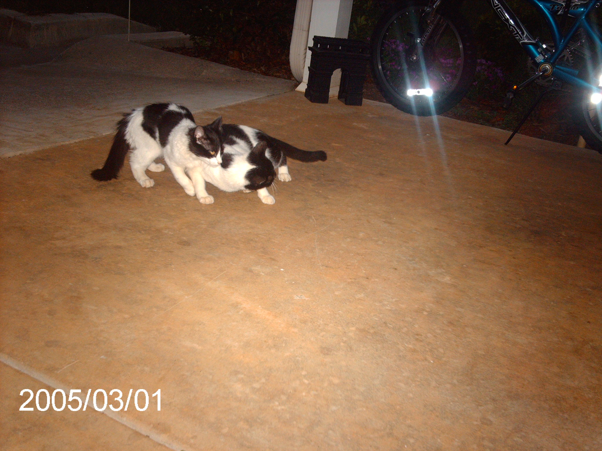 Well, i dunno what happened to the rest of them. When I arrived here, there was only three. Then two died, probably because of starvation. I say probably because they just disappeared one day. So, now we feed them our table scraps every night and if there is none then we feed them some or Reggies dog food. We are planning, the next time we go to Wal Mart, to buy an big bag of some cheap cat food to feed them. Hey, at least its better for them than humans and dog food! Also, i dunno why my camera does that. One probable reason is that my dad was spinning in circles on an swing and whacked the pocket in which i was carrying my camera. It busted the screen and also might have messed up the clockwork. It was fine before that though.