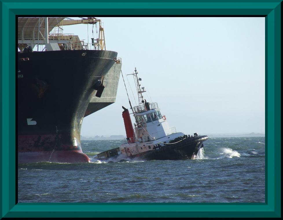 I usually walk for two or more hours every morning unless it's raining or over 30C and I always take the camera just in case. This morning I was lucky enough to meet this critter, not sure if he's a young kangaroo or a wallaby. The other photo is of the Daishin Maru being guided into port by the Cape Grant (tug).