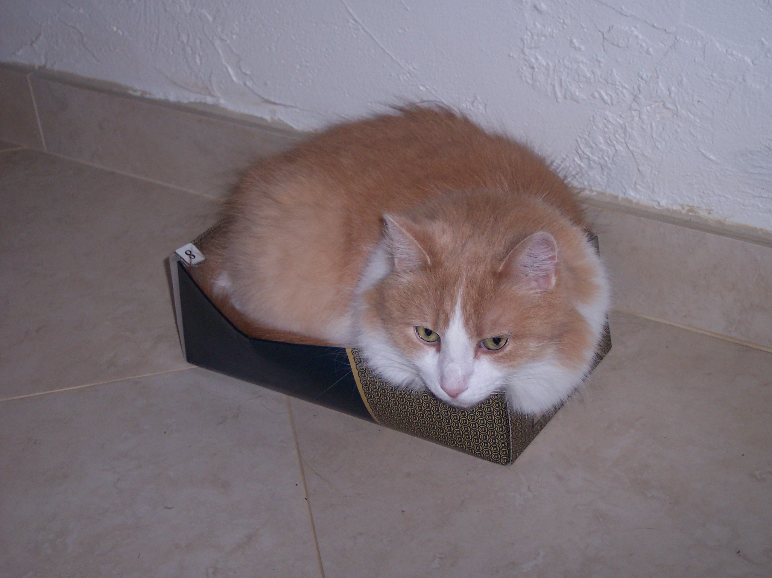 LOL! We all know that cats LOVE boxes, that includes Fister. The last few days I've had a moving box standing around to put things in for the cellar, and at night I hear these "strange" noises. That's Fister trying to open it of course.