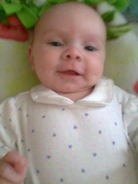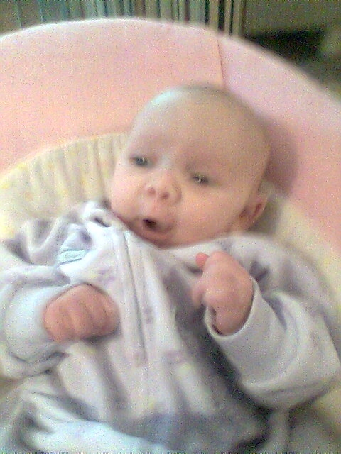 I can't believe my little angel is already 14 weeks old. She has gotten so big and has progressed so much. The doctor says she is very advanced for her age. She has even started eating rice ceral (watered down very thin) because formula doesn't fill her up anymore. (Her doctor ok'ed this). She such an angel. She stands with support and sits with very little support. She only needs the support for balance. She laughs and smiles and she even trys to talk. Hard to believe that something so little can bring such light into your life. I'm uploading some pictures in the next couple of posts so everyone can see and share in what I see everyday.