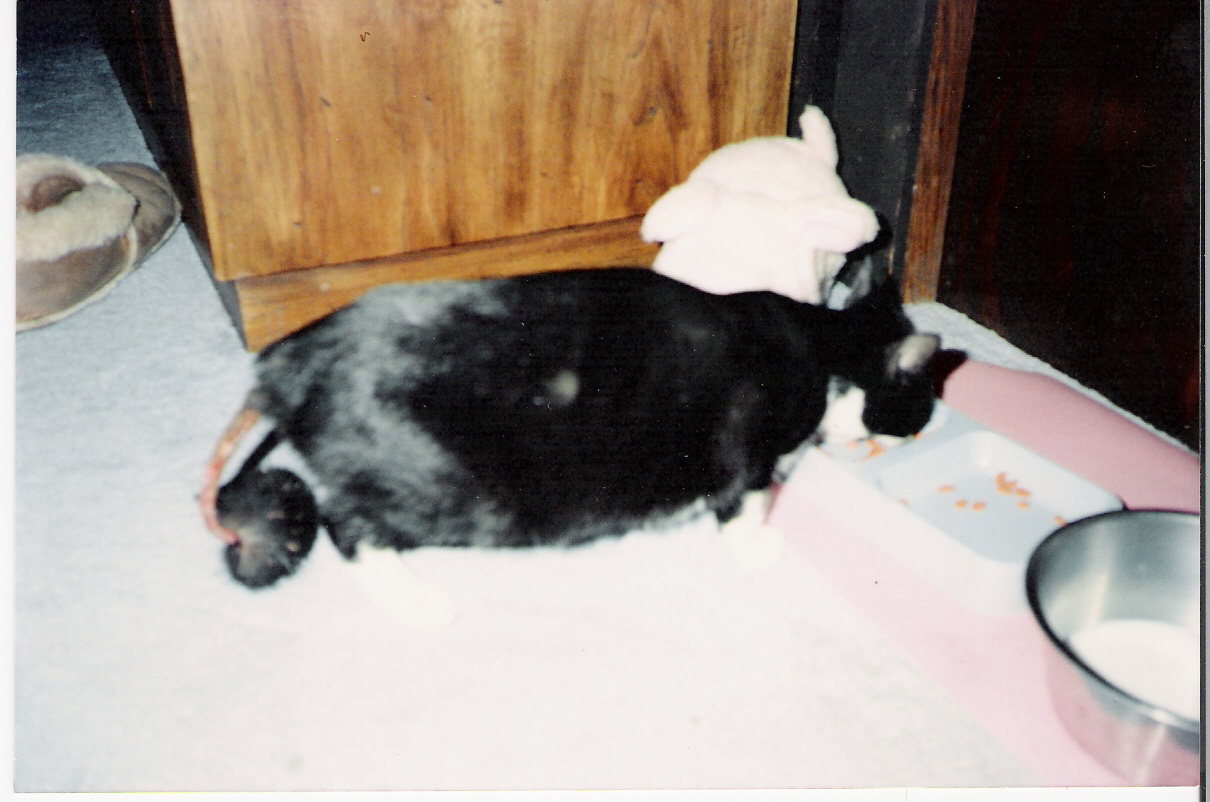 Peeka belonged to my neighbor and was missing for days in subzero temperatures so we feared the worst. My son, husband and I went out for hours day and night looking for her and finally one day my son yelled "Mom, the cat's back!" She was hiding behind our air conditioning unit and when she saw him, she tried to pull herself up and that's when he saw all the blood on her paws and in the snow behind the AC unit. When I called my neighbor to tell her that Peeka was back and that she needed emergency vet care, she said "Hey, she's an outdoor cat. Those things happen". I immediately said "May I keep her?" and she said "If you'll take her brother, too", which, of course, I did. So Peeka and Boo were my first "official" rescues.