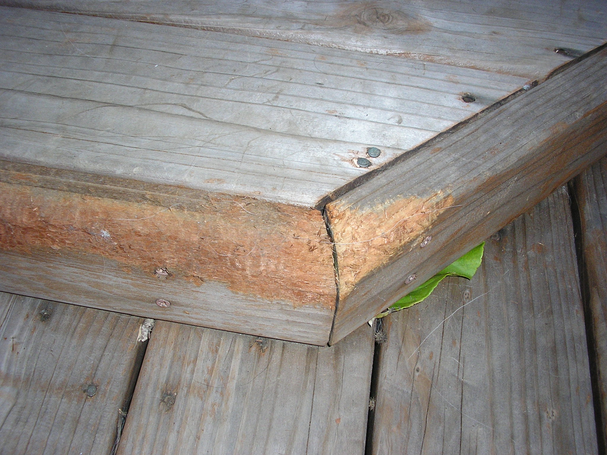 He is eating the deck and Bruce is not happy.Bruce designed and built this deck.