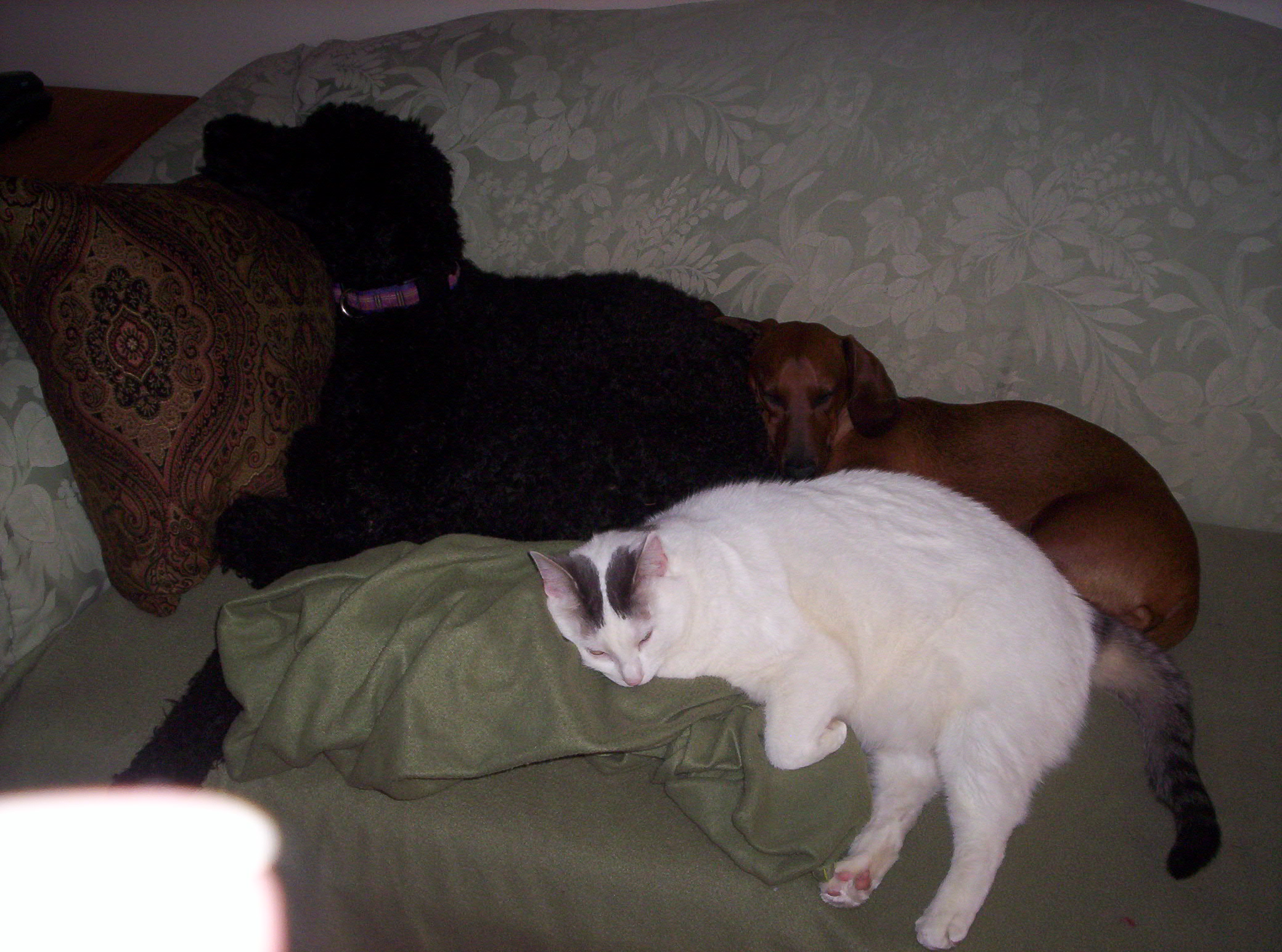 Those are really sweet pictures. I love how the dogs and cat all sleep together. Henry is a real cutie hiding in his bed. Sometimes my cat Buddy and Casey my Lab sleep together. I will have to post some pics some time.