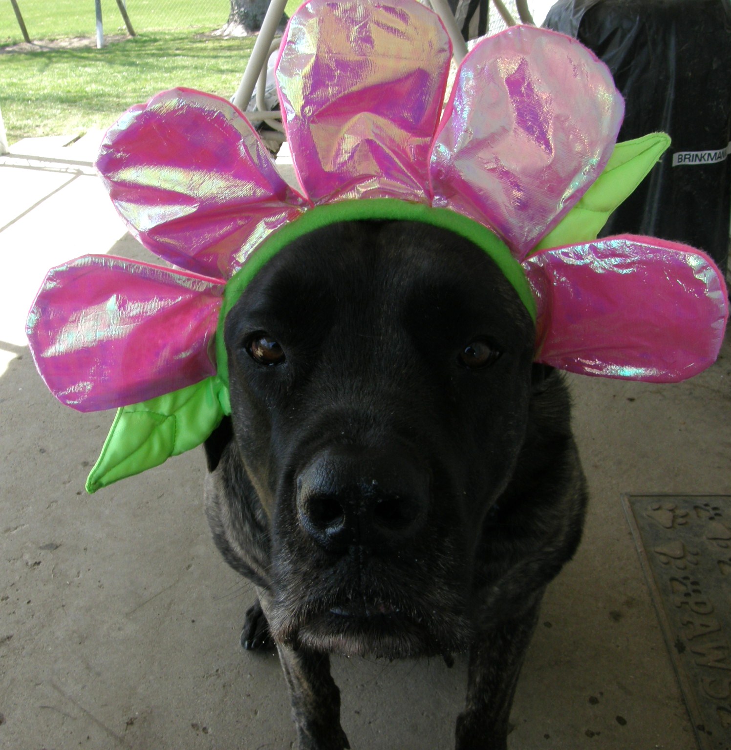 Someone at work gave me a headband with flower petals on it at work today, so I just had to come home and give them a try with the dogs