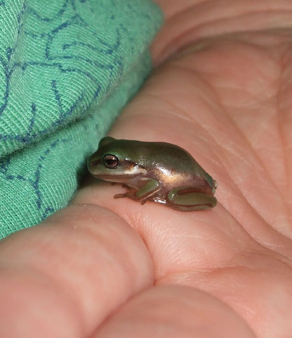 he's a cutie for sure. I've never had a pet frog but I love to watch the tree frogs hanging out on the house windows and eating bugs. I always leave the porch light off and the room lights on to attract insects for them.