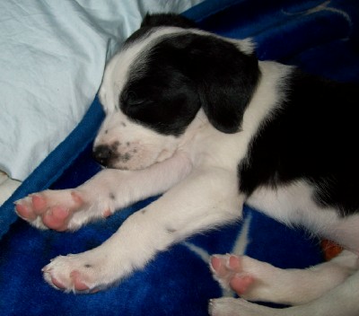 Good for your son! You should be proud!! The pup is adorable!!! I love it when puppies are sleeping on their beds with their heads on the floor....why do they do that? I know Boomer did.....He's a doll!!! Keep sending pictures this way!