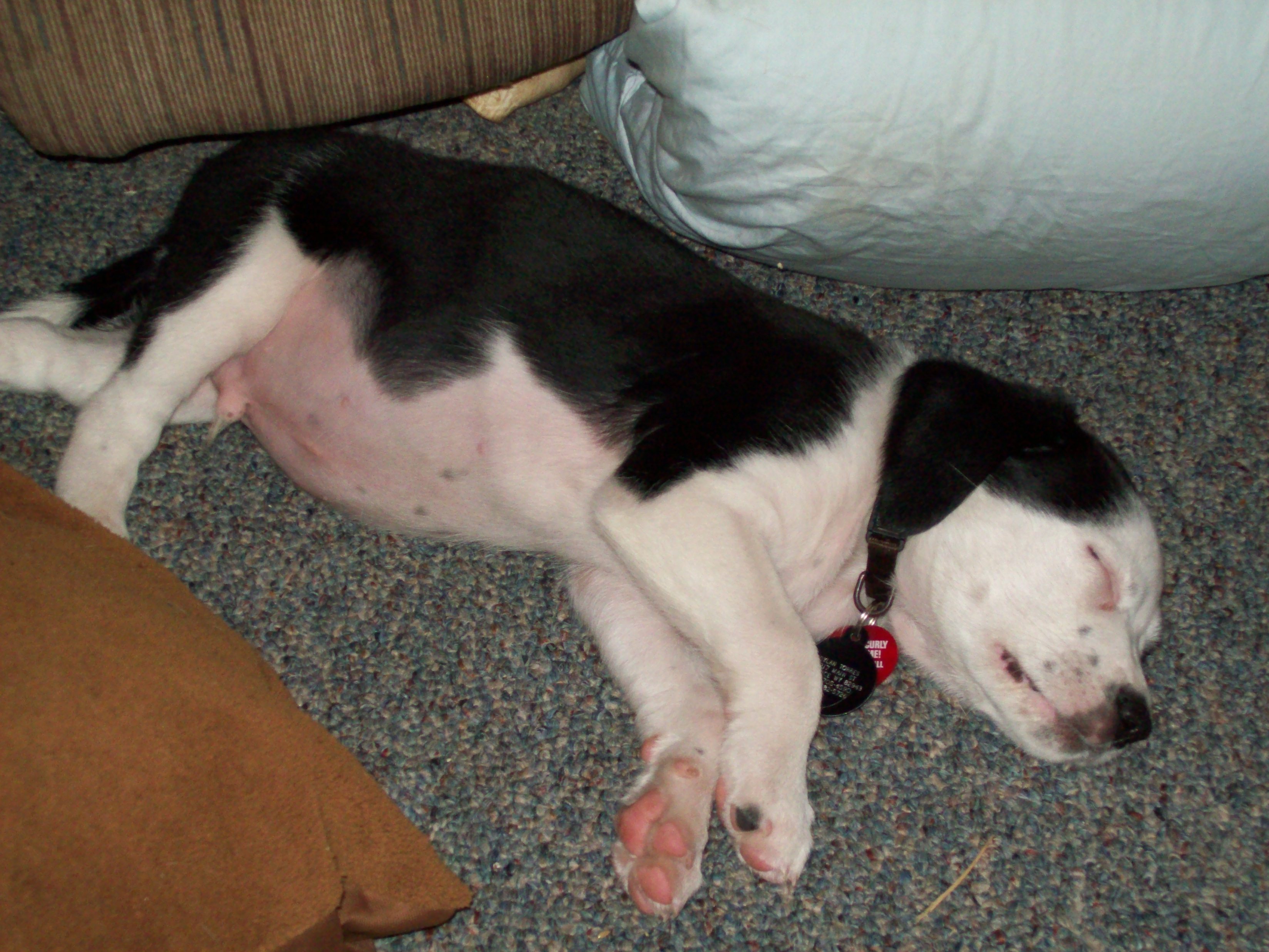 Good for your son! You should be proud!! The pup is adorable!!! I love it when puppies are sleeping on their beds with their heads on the floor....why do they do that? I know Boomer did.....He's a doll!!! Keep sending pictures this way!