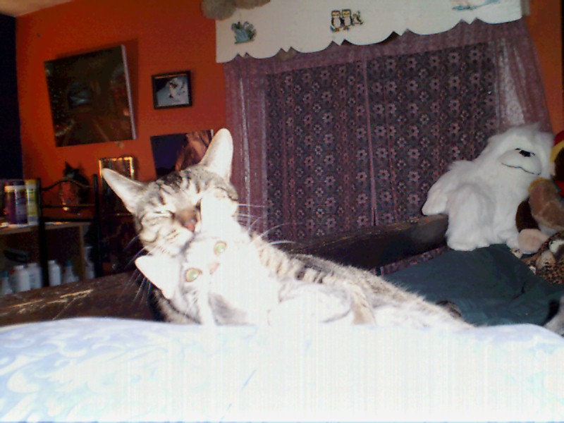 Her playmate was our dear sweet Anika who was laid to rest last Oct. I adopted Anika when she was 2 yrs old from the SPCA in Feb. 2002 (she was my V-Day gift to myself) and then I adopted Claudia in Aug. 2002 because I felt Anika needed a playmate and she was a true mom to Claudia, they loved eachother so much, Claudia would sleep on my pillow while Anika would sleep in between my legs, I sure do miss that from time to time.
