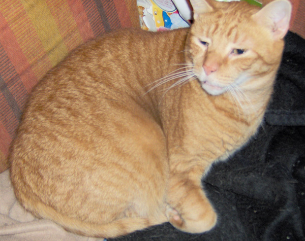 At my first job we'd play sheepshead every lunch, and one of the decks of cards had the Chessie cat on it. Archie is in the exact same position!