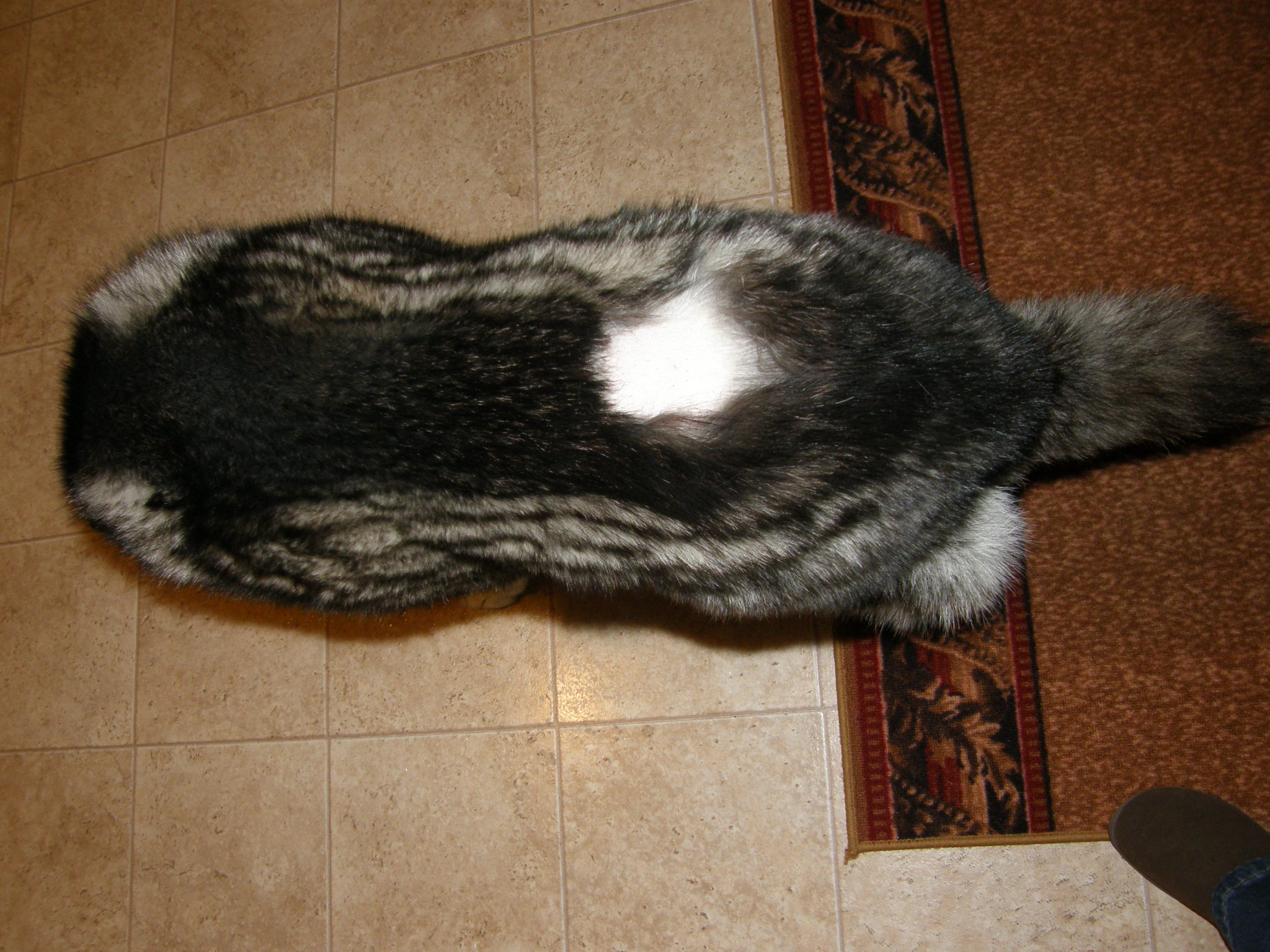 I've added a picture of what she does when the others go outside and one of her back where they shaved her to give her the epidural. And for some reason they shaved the bottom of one of her feet too