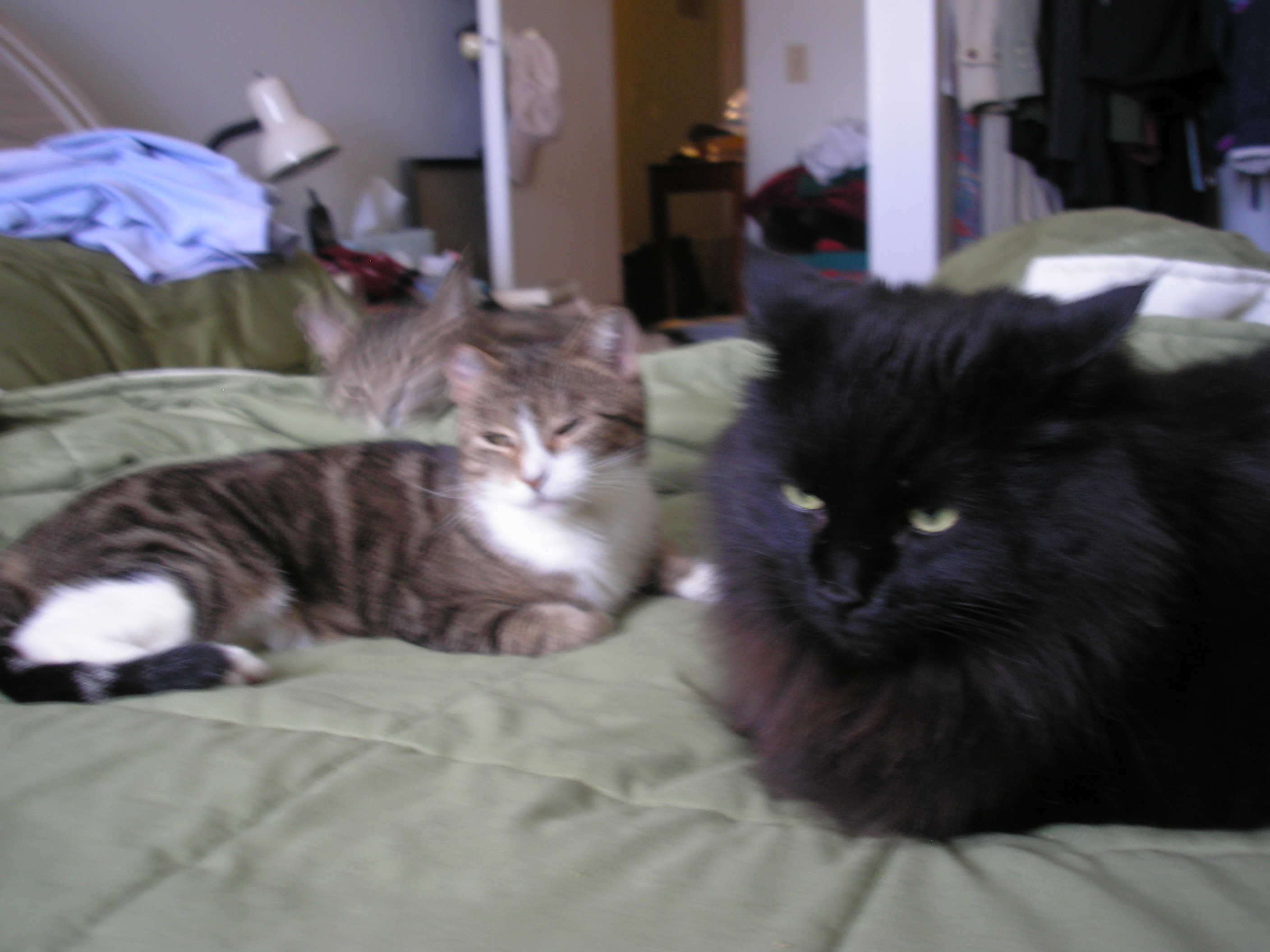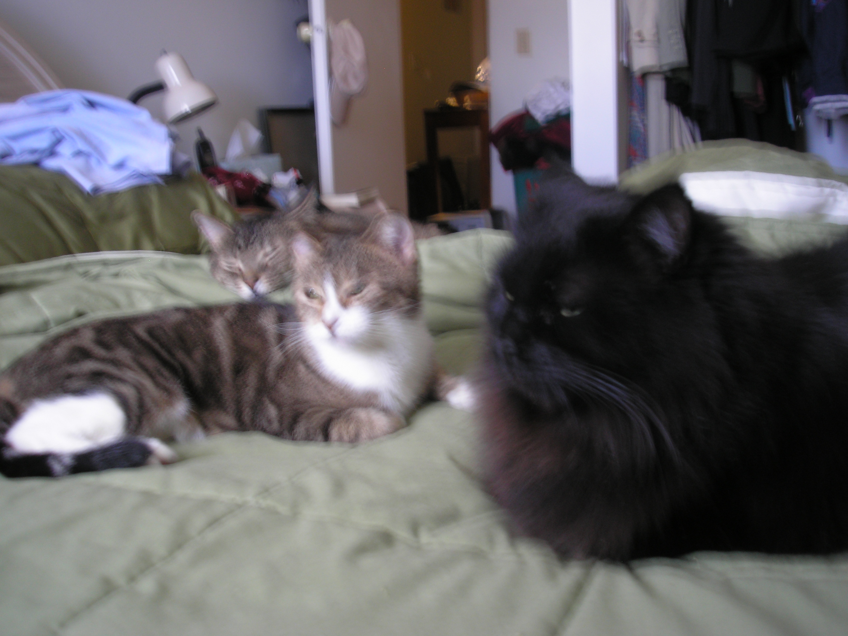 I have 2 pics of all THREE of them on the bed - but they are blurry because I took them with no flash...