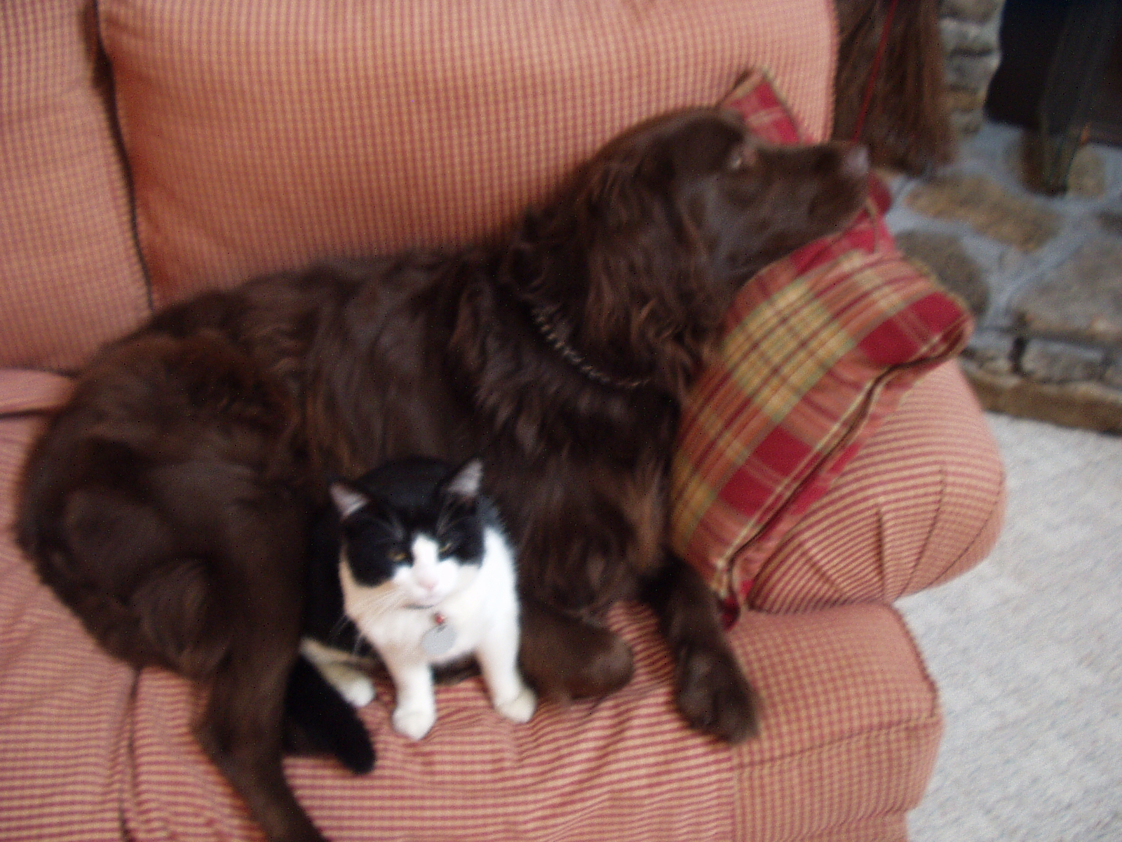 My favorite was that big German Shephard licking the white/black kitty.![]()
