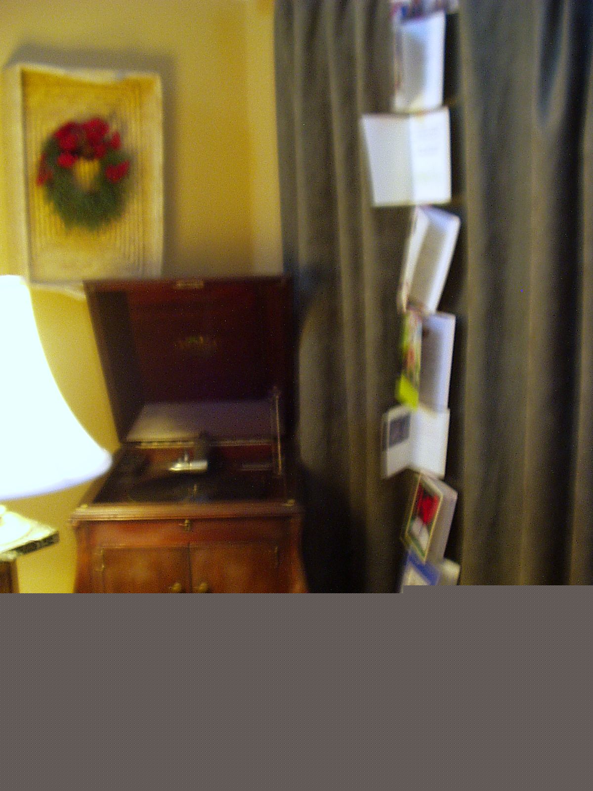 Attached are some photos of my card decorations. Sorry for the poor picture quality. My camera doesn't do well indoors.