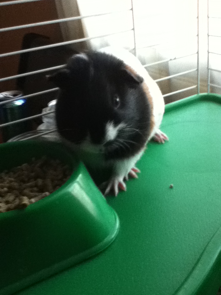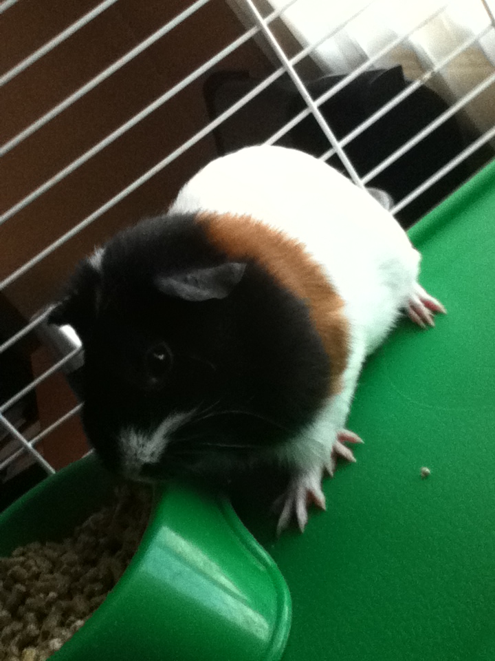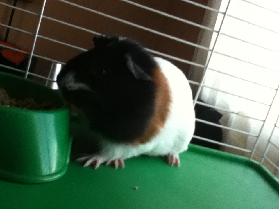 So i went to petco to pick out my new guinea pig, cage already set up at home, so i walk in and i had my heart set on another female, this wasnt the case there were no females so i looked at the males there was to a black one with crazy fur lol and then a tri colored non crazy XD i really wanted a female so i left and went to another pet store, they had one guinea pig and it was female now in my head im still thinking about the tri colored guinea lol. so im looking at her shes got crazy fur and looked veryyyyy sickly and her red eyes kinda creeped me out a little lol so i asked my mom to take me back to petco, i walked in went straight to the ginea pigs and decided i was getting the tri colored male, so home he came he was in his cage for about an hour, then i walked by and he perched his two front feet on the cage door and just looked at me so of course i took him out and he just snuggled up against me on my bed lol, same thing this morning hes watching me type haha and listening to the crickets from the reptile tank haha but yes im glad i picked him i hope to get a female though, lol now pictures are going to have to wait untill later on today because ive got to get to school, lol bye everyone still need to think of a name for him XD