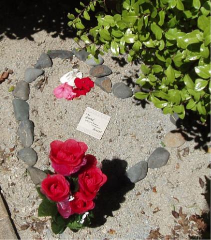 I have also added a little heart in stones around her resting place, i am thinking of adding a carpet rose which is called perfect pet, for memorials, in time we may do that, but for now this is her little grave site.