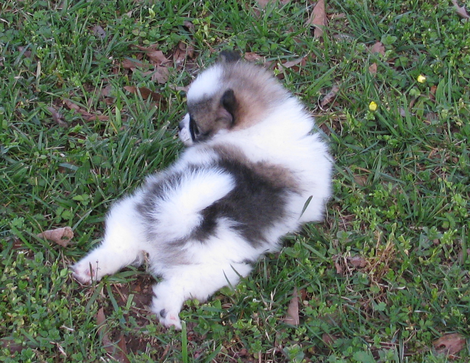 I know everybody thinks "my puppy is the cutest" but honestly I dont think I have ever seen a cuter puppy than this little Pom. I am laughing. It was such a difficult choice to choose between a beige with dark face, and two tri-colors. I took the one that had the most white & was a bit smaller.