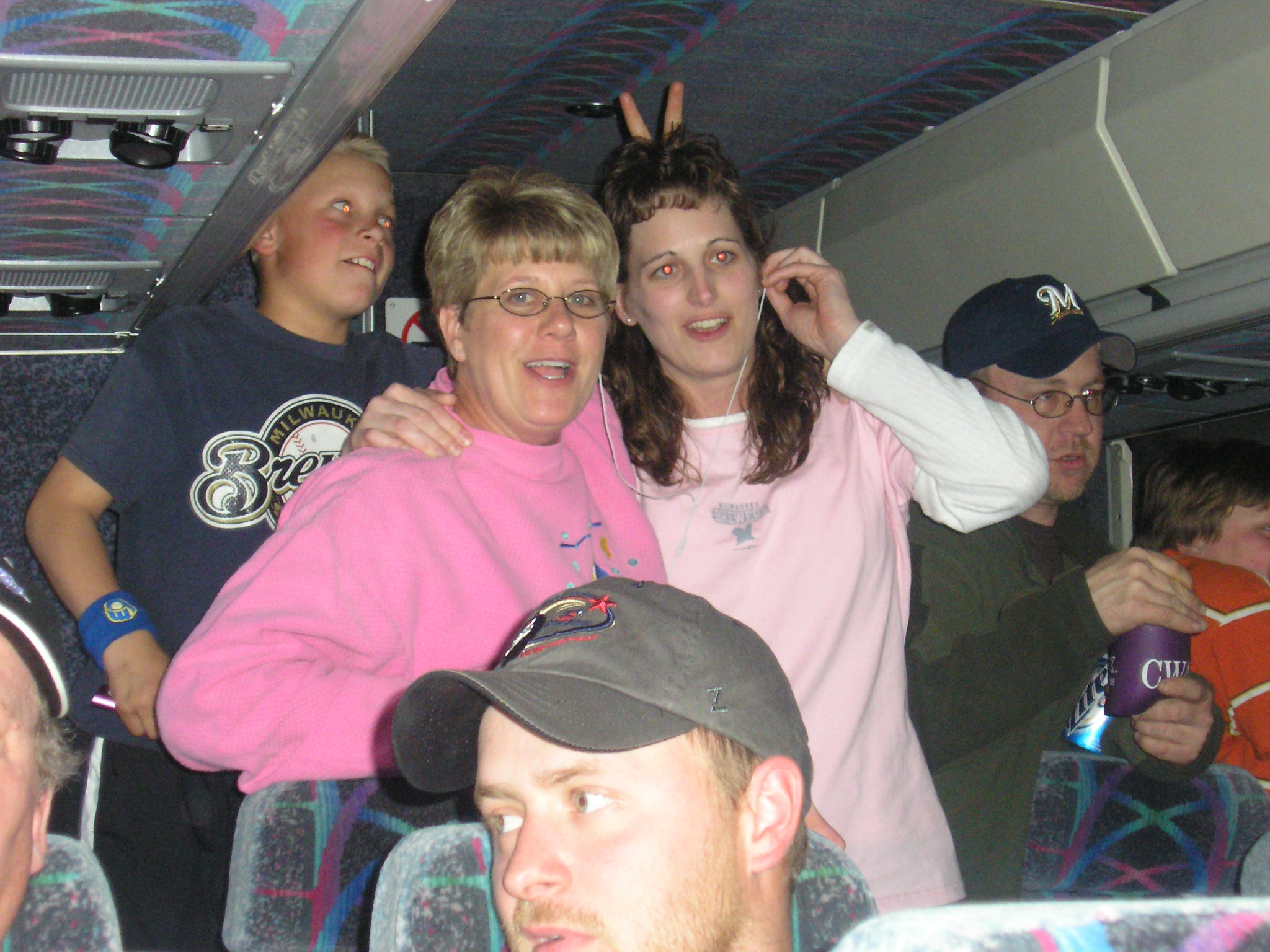 (L to R; Dad and brother, Dad and Angie, Weinie Race!, all the kids (me, jake, ashley and katlynn) and last is Angie on the bus back, singing... she had TOO much to drink!)