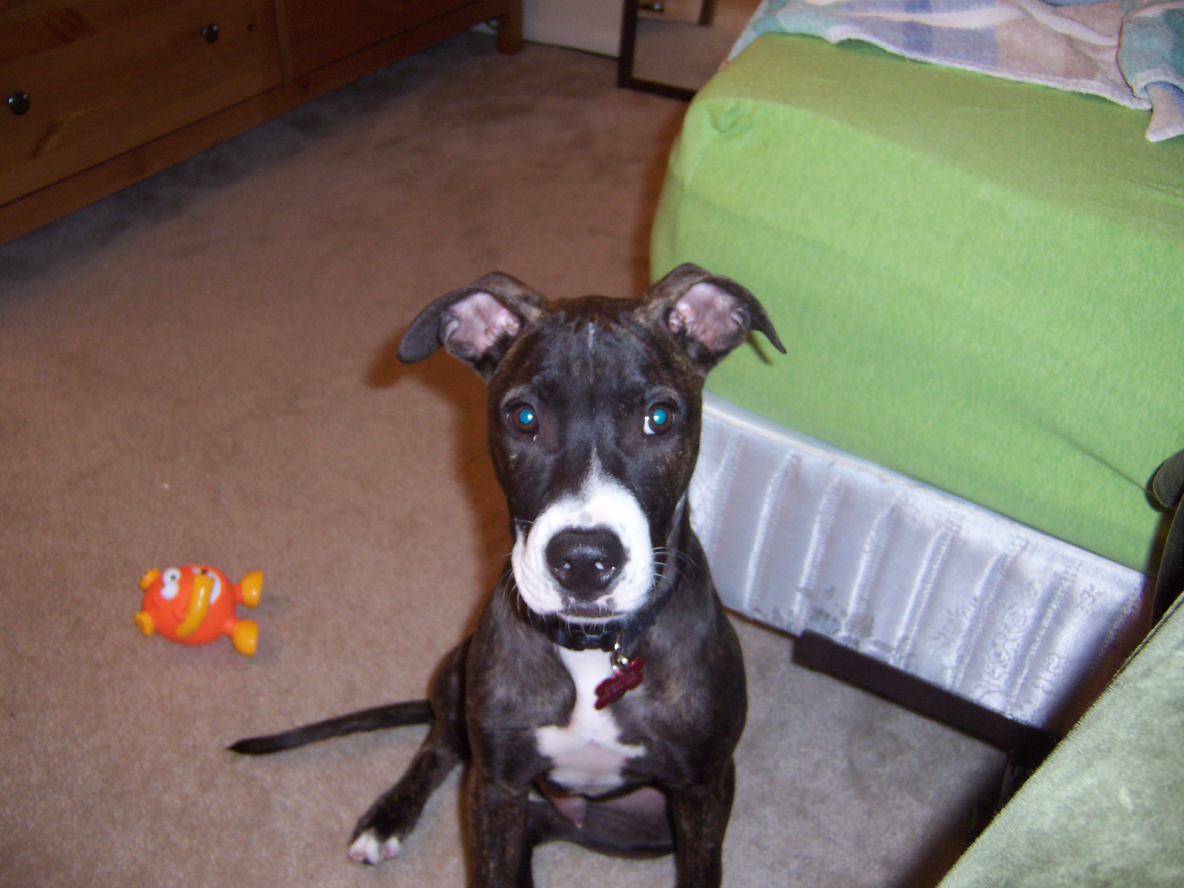 hello! i recently adopted a 4 month old mix from a shelter. the people at the shelter said he was a pit bull/lab mix. but my vet put him down as a lab mix and says his brindle color is the only thing that makes him look like a pit bull. just wanted to see what you guys thought.![]()