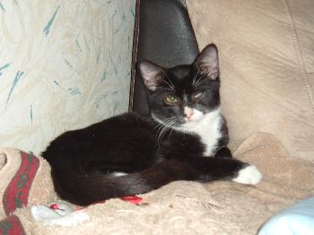 My favorites right now are two tuxedo kitties, lol.... shocker, I know. I just love my tuxies. The first one is a sweet little girl named Bianca. Bianca is special because she only has one eye (her other became infected and the shelter had the vet remove it). She doesn't let that hold her up and is totally spunky and sweet.