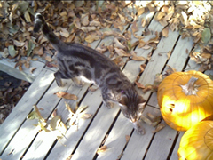 This is Houdini last Halloween, the ones that just passed outside on our patio playing in the leaves.