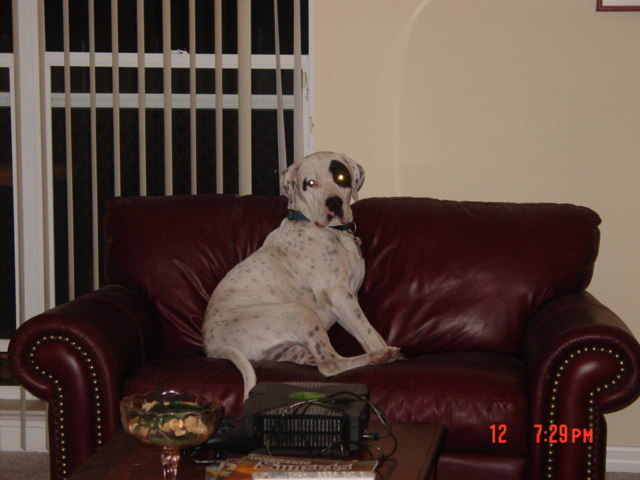 Esster...Yes,Joey is my "Danemation"...Great Dane/Dalmation....Quite The Combo.....2 years