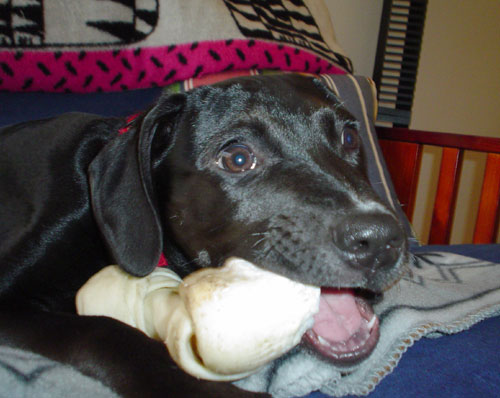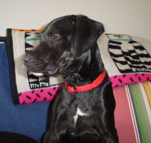 He's diffinately Lab, chocolate lab. He *may* have something else in him, probably pit bull, but he's a nice looking chocolate color, and very beautiful. He was sad for awhile but now seems to be doing OK. The lady gave me all his things, like toys and food. It's Puppy Chow so I am going to go buy a different bag once Dan gets home. She also gave me 50 dollars to help towards the cost of vet bills, which was totally unexpected but nice.