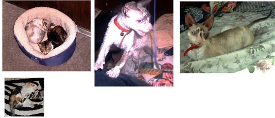 These are my cats... A tortie and white cornish rex and a tortie point pet quality cornish rex... I take her with me almost everywhere... she's my baby!!!!