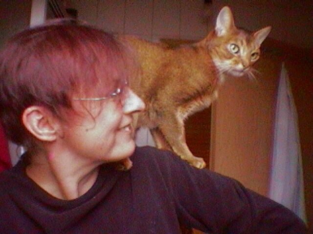 Here's a pic of AmberLee and I at the cat show last Sunday. I hope you don't mind AmberLee. In the first pic I'm on the left and in the second pic I'm on the right.