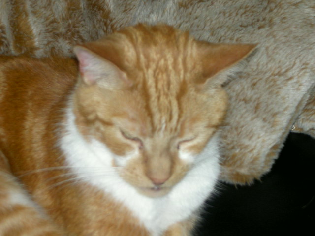 And My New Kitten Miquelito the Orange Oriental Shorthair sleeping with Fellow Found Cat Kittens Pouncierge and Scrappy2.