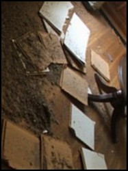 two pictures, one of floor, second of broken litterbox & glass from living room and I won't post the rest of bedroom where most of my cats hung out that night, they are too graphically pain to see - there were blood all over.