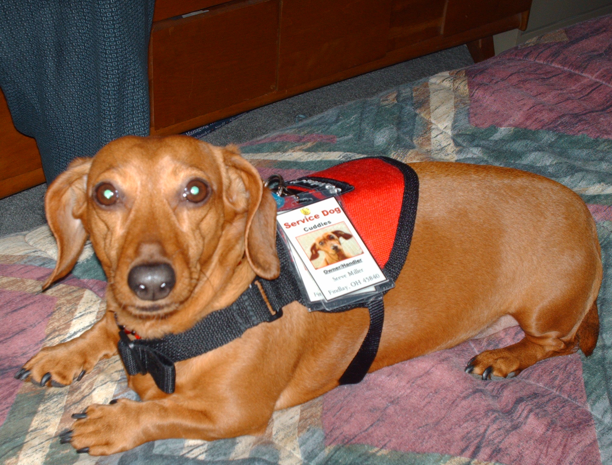 Cuddles is a red smooth and a service dog.she is also the founding dachshund for the national dachshund races in findlay ohio